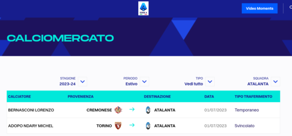 Sul sito ufficiale della Serie A sono stati inseriti i contratti depositati in seguito all'apertura del calciomercato. Tra questi c'è anche quello di Michel Adopo, il quale è ufficialmente un nuovo giocatore dell'Atalanta. Il centrocampista classe 2000 arriva dal Torino da svincolato.