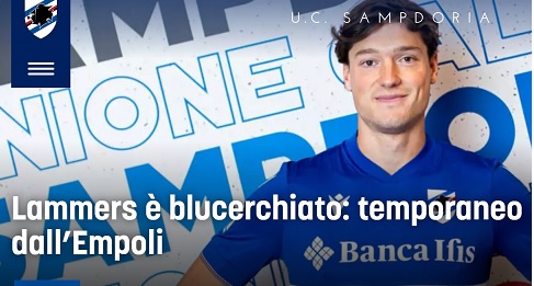 L’U.C. Sampdoria comunica di aver acquisito a titolo temporaneo dall’Empoli F.C. i diritti alle prestazioni sportive del calciatore Sam Lammers (nato a Tilburg, Paesi Bassi, il 30 aprile 1997).