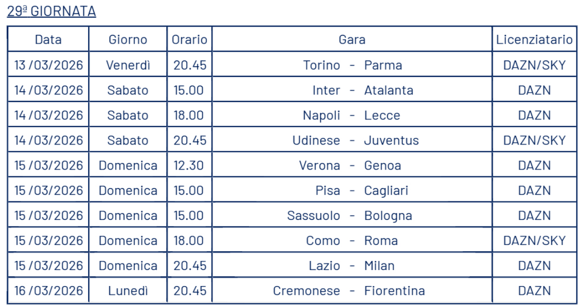 Appena comunicate dalla Lega Serie A