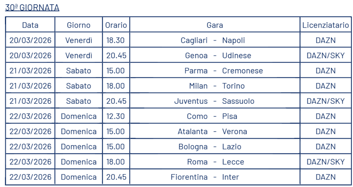 Ufficializzate le date delle giornate 28, 29 e 30
