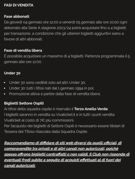 settore ospiti in vendita dalle 16 di oggi al costo di € 7 (+ commissioni) in *tutti i punti vendita Vivaticket di Bergamo e Provincia* (non online).
