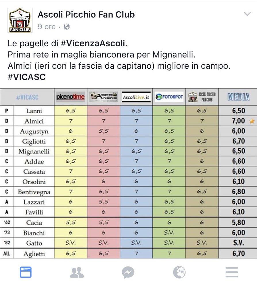 Anche i numeri sono dalla sua parte. Nella media voti dei giornali Ascolani, il continuo crescendo di prestazioni l'ha portato ad essere eletto migliore in campo nell'ultimo Match, cosa abbastanza inusuale visto il ruolo di Terzino destro.