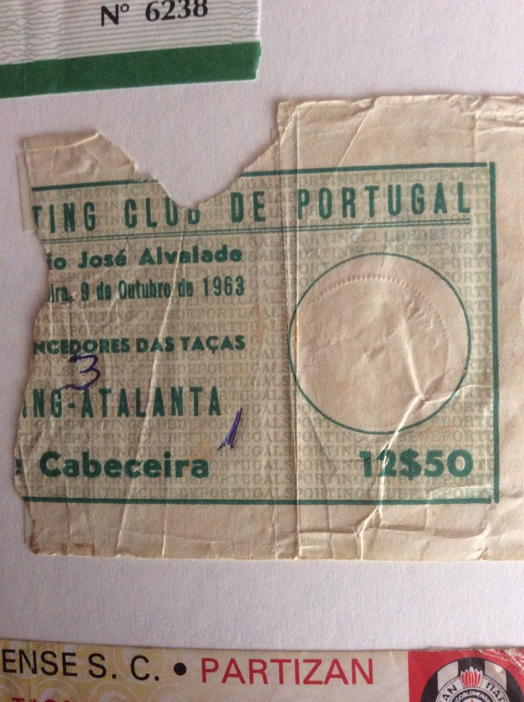 Ecco un raro cimelio, il biglietto di Sporting Lisbona - Atalanta del 9 ottobre 1963, reperito in rete