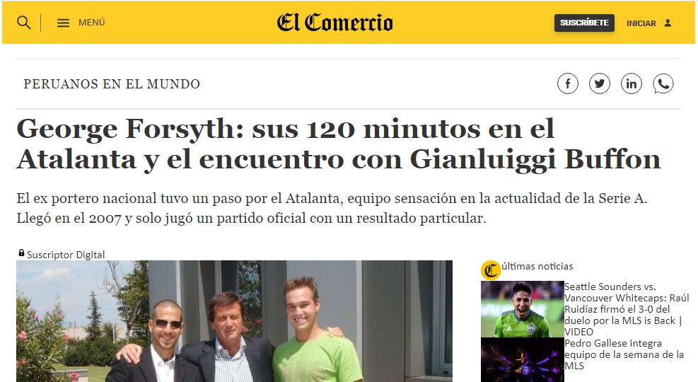 E' George Forsyth che dopo una fugacissima apparizione coi nostri colori (una sola presenza in coppa Italia nel 2007 ad Ascoli con 2 pere sul groppone) se ne tornò in patria per una dignitisosissima carriera nell'Alianza Lima (la Juve peruviana) e, una volta appesi i guanti al chiodo, intraprendere una carriera politica di successo che al momento lo vede Alcalde (cioe' sindaco) della citta' di La Victoria e prossimamente in corsa per la presidenza del Peru con i favori dei sondaggi come indichiamo sotto.
