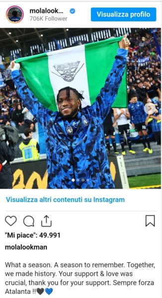 E se lo scrive lui sul suo Instagram figuriamoci se mai noi scorderemo lui anche tra 50 anni, lui e la sua tripletta in finale che ci ha regalato l'Europa League...