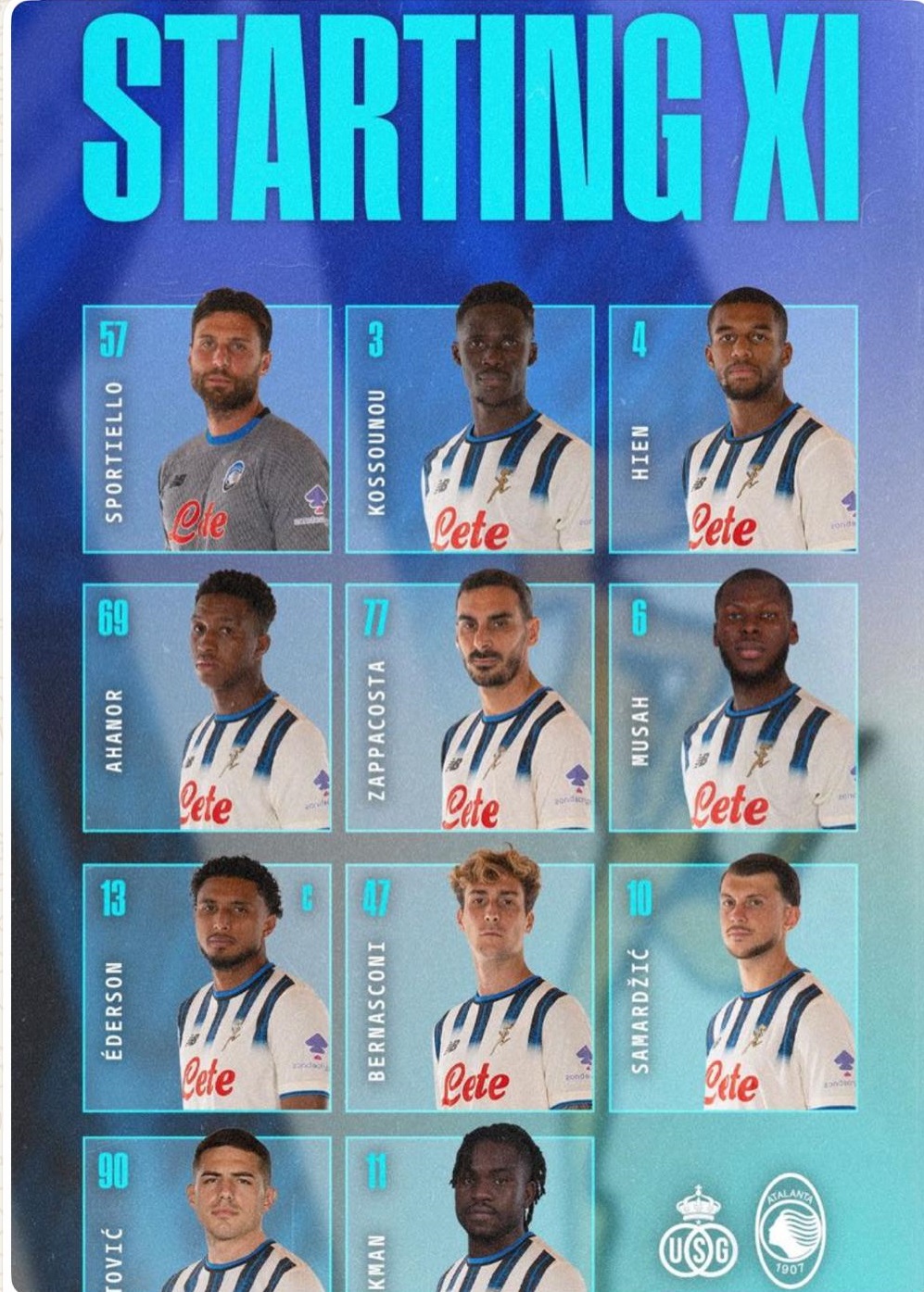 UNION SG ATALANTA FORMAZIONI UFFICIALI: SPORTIELLO ED ALTRI CHE HAN GIOCATO POCO