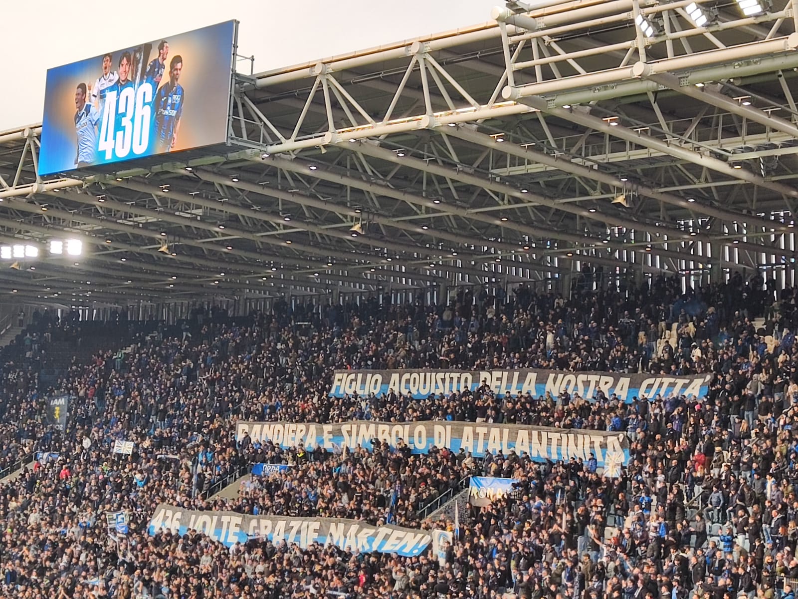 Un'ovazione alla quale si è aggiunta al termine della partita anche tutta la squadra (mister e dirigenti compresi). Dopo il 90', anche la consegna della maglia celebrativa (con le 436 presenze) da parte dello stesso Gianpaolo Bellini, altro storico ex nerazzurro fermo, appunto, a 435 presenze in carriera con la maglia dell'Atalanta.