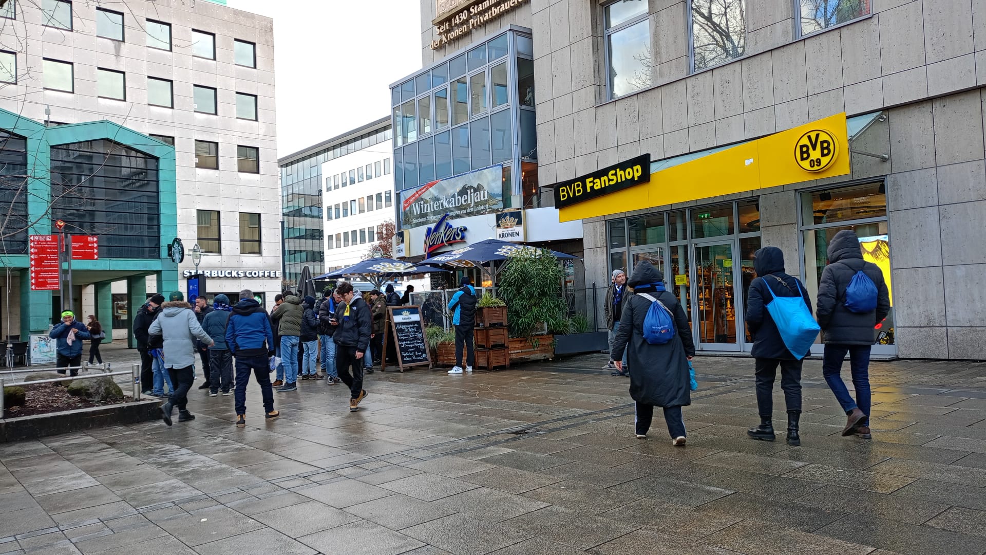 Piu' che un modo di dire, un dato di fatto. Alcuni nostri tifosi si sporgono dalla balconata di una delle torri del centro di Dortmund!