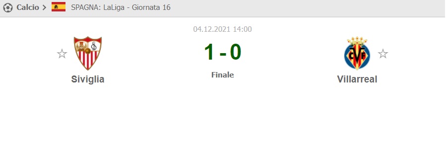 16ma giornata di Liga, il Villarreal è ospite del Siviglia e viene sconfitto per 1-0, rete di Ocampos al 16' del primo tempo.