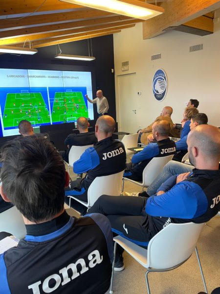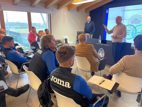Durante l’incontro, durato un’ora e mezzo, il dirigente federale ha affrontato varie tematiche relative alle metodologie di allenamento e alla crescita dei giovani calciatori, sottolineando poi come l’Atalanta sia il principale serbatoio per le nazionali giovanili: finora, infatti, sono stati 21 i convocati nerazzurri dall’U21 all’U15 nella stagione 23/24 (esclusi gli stage). “Mi fa doppiamente piacere essere qui, perché l’Atalanta è la società che ci dà il maggior numero di giocatori per tutte le selezioni azzurre e perché con Roberto Samaden c’è un grande rapporto di stima e collaborazione che va avanti da ormai più di venti anni”. Queste le parole di Viscidi, che hai spiegato il messaggio che vuole trasmettere: “Negli ultimi 25 metri di campo dobbiamo avere dei giocatori che – con i dribbling, con le triangolazioni, con dei movimenti di tecnica importanti – siano in grado di fare la differenza, perché è di questi giocatori che c’è sempre più bisogno. È un problema di metodologia, perché ci preoccupiamo sempre di come gioca la squadra, meno di come gioca il singolo. Nel settore giovanile noi dobbiamo formare dei giocatori. Spesso, invece, si allena la squadra per vincere le partite, anziché allenare i giocatori in funzione della squadra: è il giocatore il centro del progetto, questo è il concetto fondamentale e non dovremmo mai dimenticarlo”.