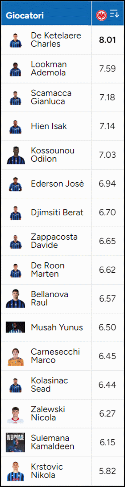 Alle sue spalle sul podio Ademola Lookman, che stan pian piano raggiungendo i livelli ai quali eravamo abituati a vederlo in questi ultimi campionati e Scamacca che ha preso solo due pali senza segnare ma ha fornito un prezioso contributo nel reparto offensivo in quello che era il tridente che ci condusse alla grande vittoria di Dublino
