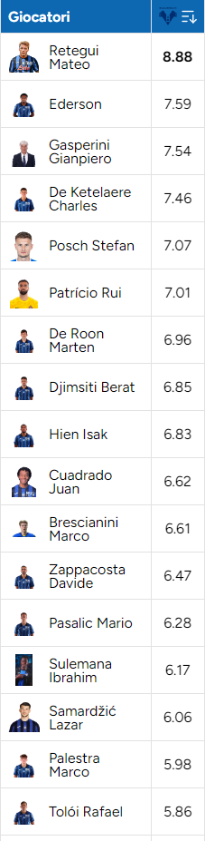 Non c'era molto da girarci intorno. Con la quaterna in tasca è stato Mateo Retegui ad aggiudicarsi la tappa di miglior atalantino in campo a Verona. Sono 6 le partite nelle quali risulta MVP sulla scorta dei vostri voti, un record. Come record è stata la valutazione media di 8,88, la piu' alta da parte di un nostro giocatore dall'inizio del campionato!