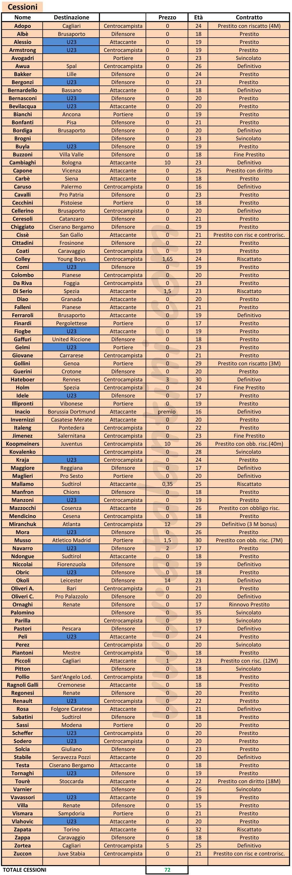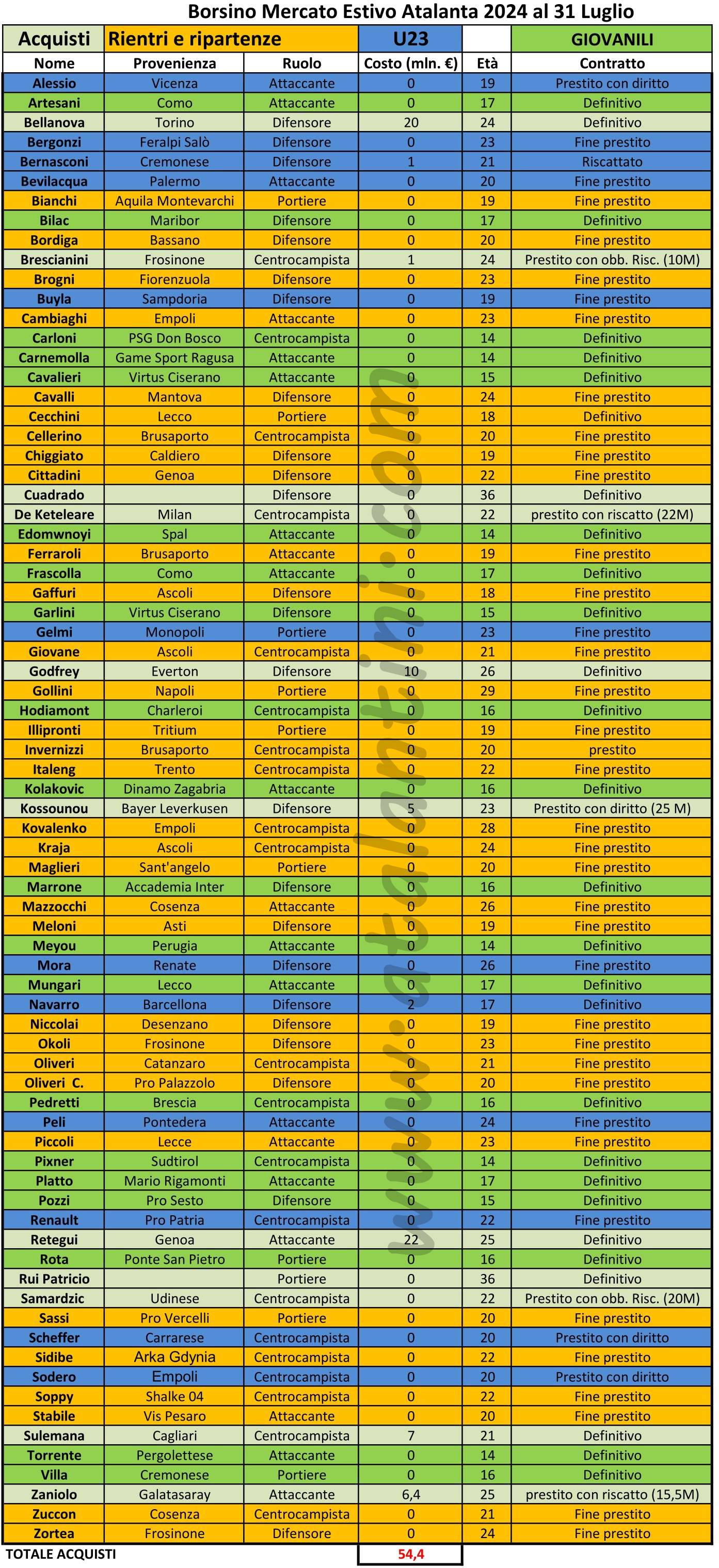 Questo il compendio il piu' possibile completo dei movimenti di mercato dell'Atalanta alla fine della sessione estiva del calciomercato.