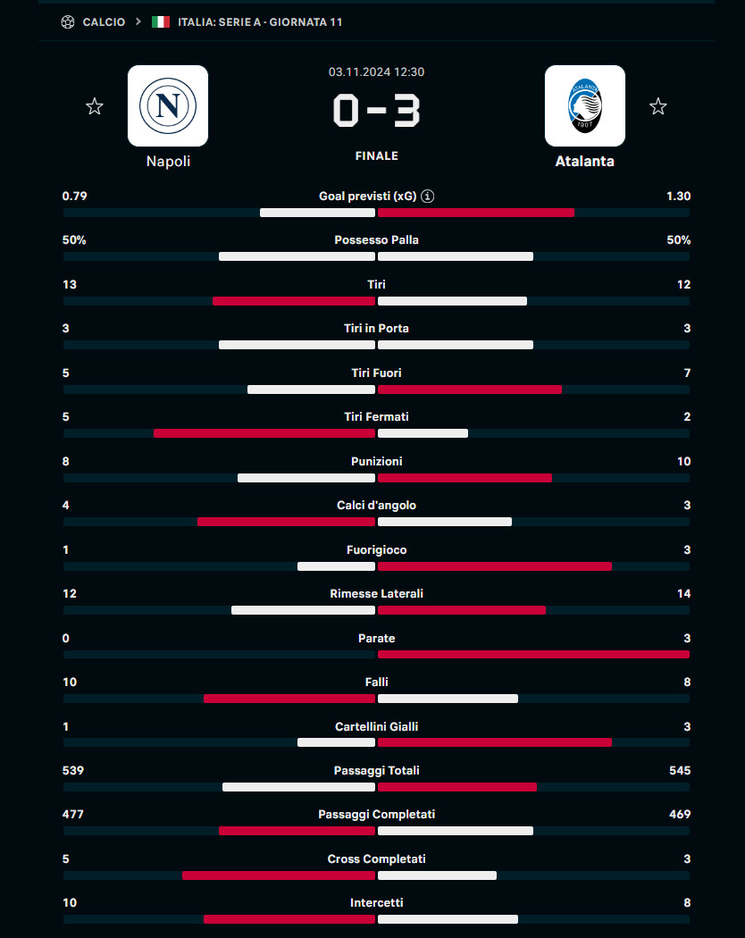 Le statistiche di Napoli - Atalanta