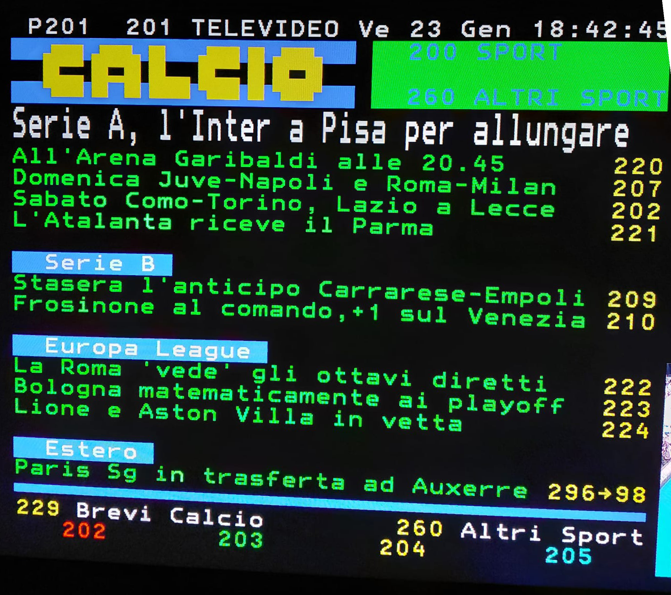 OK, non riguarda l'Atalanta ma i soldi del canone sono anche i nostri e vorremmo sapere quanta gente compone la redazione di Televideo. Di solito in RAI c'e' un direttore di testata, qualche vice ed una schiera di redattori. Possibili questi errori?
