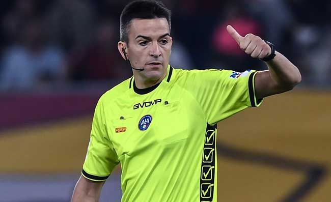I suoi assistenti sono stati Filippo Meli di Parma e Stefano Alassio di Imperia, IV ufficiale Paride Tremolada di Monza, V.A.R. Aleandro Di Paolo di Avezzano, A.V.A.R. Michael Fabbri di Ravenna.