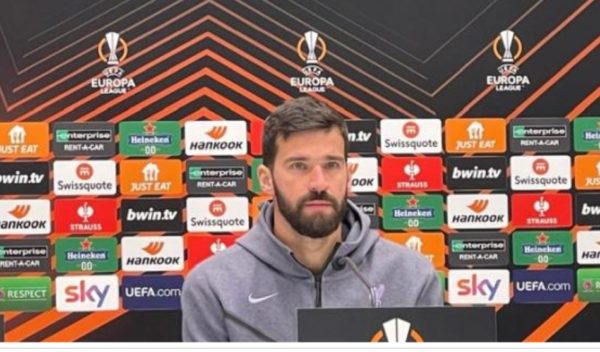 Il portiere del Liverpool Alisson in conferenza stampa per analizzare la sfida di domani contro l'Atalanta.