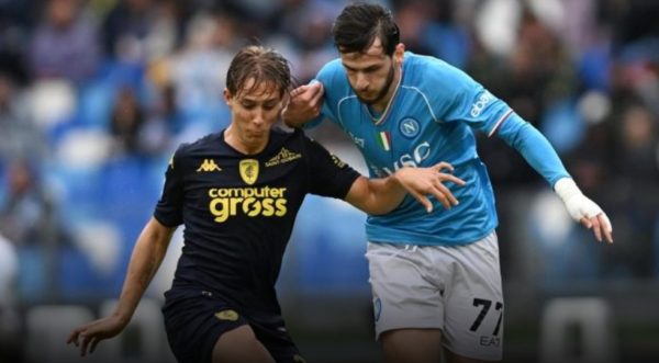 L'Empoli vince al Maradona sotto il diluvio e inguaia il Napoli. Una prodezza di Kovalenko al 91' decide il match e mette nei guai la panchina di Rudi Garcia, che esclude Kvaratskhelia e Zielinski dai titolari facendoli entrare solo al 54'. Berisha tiene in piedi l'Empoli con una serie di prodezze e nel finale la coraggiosa squadra di Andreazzoli la sblocca. De Laurentiis abbandona il suo posto in tribuna dopo il gol incassato. Gli azzurri per la quinta partita di fila non vincono in casa.