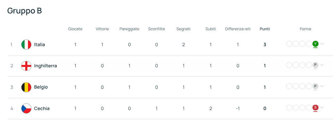 Il tabellino di Italia-Cechia 2-1 (2-0 pt)