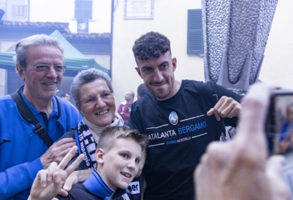 Coreografia da stadio quella che sabato sera, 15 giugno, ha accolto l’esterno sinistro dell’Atalanta Matteo Ruggeri, e il preparatore atletico dei Neroazzurri, Marcello Ginami, entrambi zognesi. La festa, organizzata per loro da Comune, club Zogno Neroblu e Asd Zognese, ha attirato in piazza Garibaldi il pubblico delle grandi occasioni. Al centro la maxi riproduzione di tre metri della coppa dell’Europa League. Quindi l’ingresso di Ruggeri e Ginami dalla scalinata che scende dalla chiesa. In mezzo ai fumogeni e cori da stadio.