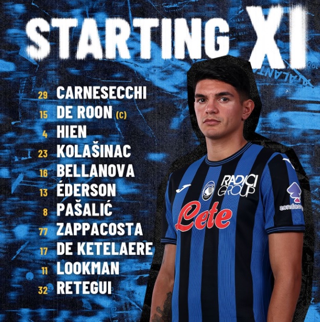 ATALANTA (3-4-3): Carnesecchi; De Roon, Hien, Kolasinac; Bellanova, Pasalic, Ederson, Zappacosta; De Ketelaere, Retegui, Lookman. All. Gasperini