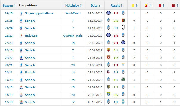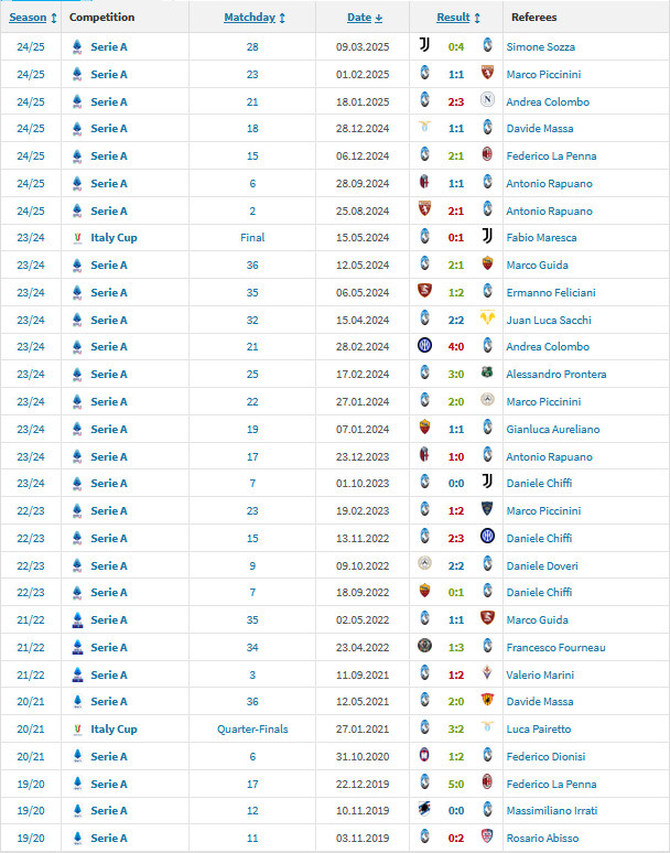 Atalanta con Chiffi arbitro 13 partite 6 vinte 3 pareggiate 4 perse