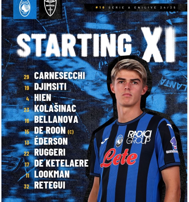 ATALANTA (3-4-3): Carnesecchi; Djimsiti, Hien, Kolasinac; Bellanova, De Roon, Ederson, Ruggeri; De Ketelaere, Retegui, Lookman. All. Gasperini