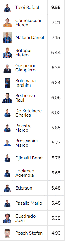 Quasi commovente il riconoscimento dei nostri lettori al giocatore e all'uomo Rafael Toloi. Considerato che per la Dea la partita non valeva niente i nostri lettori praticamente in massa hanno voluto riconoscere e ricambiare al brasiliano dieci anni d'affetto, riconoscenza ed attaccamento all'Atalanta e a Bergamo nel giorno del suo ritorno in patria.