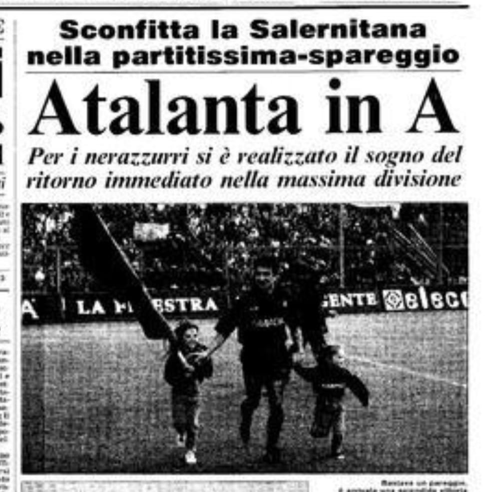 “Serie A! Serie A!” si sente ovunque, anche dalle finestre dei palazzi. Quella sera Bergamo non ha dormito. La pioggia si era mischiata alle lacrime di gioia. Non era solo una promozione: era una rivincita, un sogno che si avverava. Una vera sentenza inappellabile: avevamo due punti in più, bastava un pareggio, ma volevamo vincerla. E lo abbiamo fatto. Quel colpo di testa di Valentini, a otto minuti dalla fine, è ancora stampato negli occhi di chi c’era. Una partita da dentro o fuori. Una partita da Dea.
