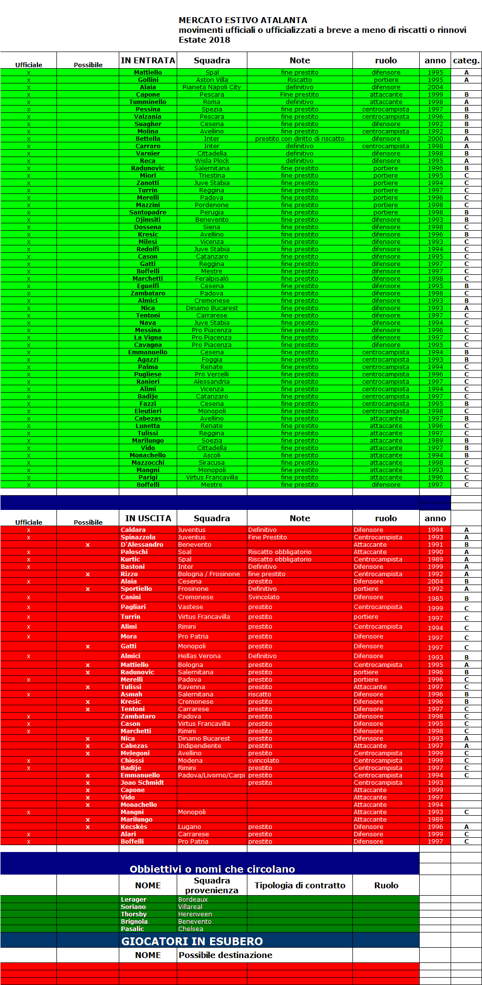 Mai come compilando la situazione di tutti i giocatori legati a qualsiasi titolo all'Atalanta si riesce a capire quale mole di lavoro burocratico, amministrativo e tecnico ci sia dietro i muri della sede di Zingonia.