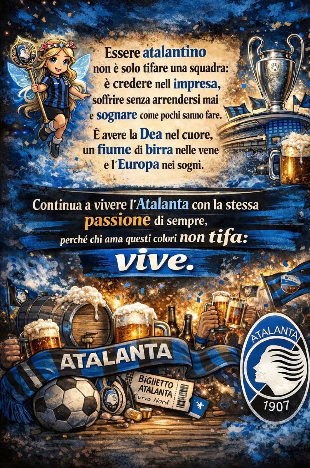 Purtroppo o per fortuna questo sito e' devoto solo alla Dea e a questi suoi anni favolosi. Si, anche il 2025 checche' ne diciate. Perche' vincere 4-0 sul campo della Juve, costringere al pareggio il mitico Barça a domicilio o trionfare a Francoforte e Marsiglia sono cose che nemmeno al Subbuteo o alla Playstation ci saremmo nemmeno mai sognati di ottenere
