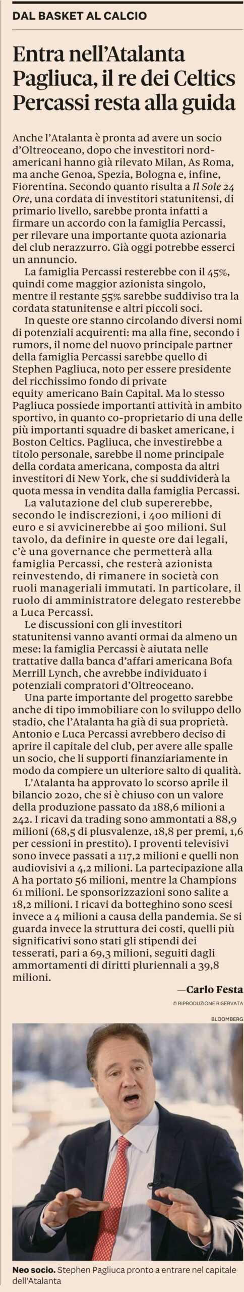 Tutto su Stephen Pagliuca, l'alter ego americano del Tone e nuovo azionista dell’Atalanta