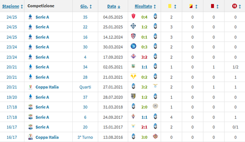 Quattordicesima direzione per Pairetto con l'Atalanta e diciannovesimo gettone per Chiffi al VAR