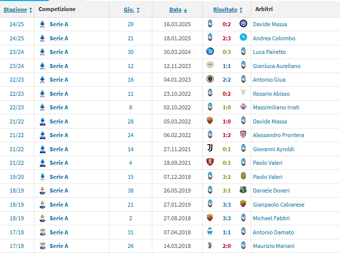 Settima partita per Rapuano con l'Atalanta, ma curiosamente sarà la sua prima a Bergamo