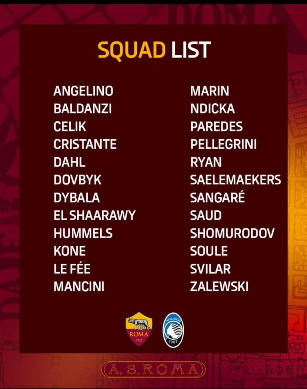 Convocati Roma, solo uno out