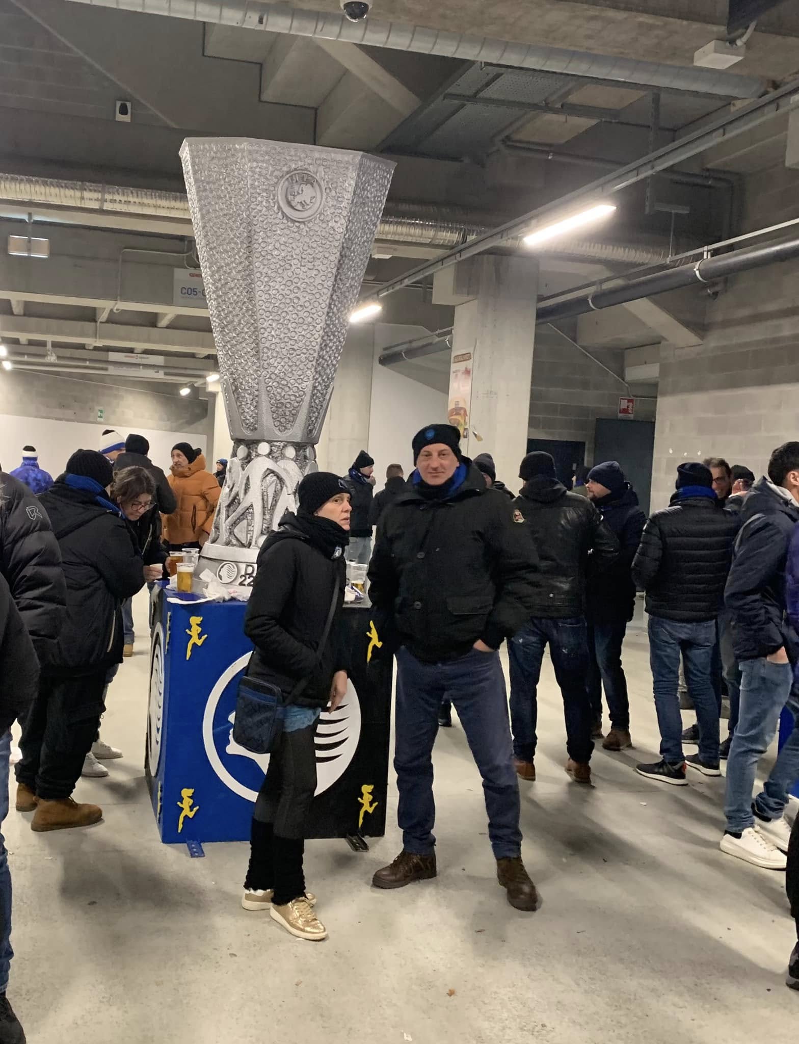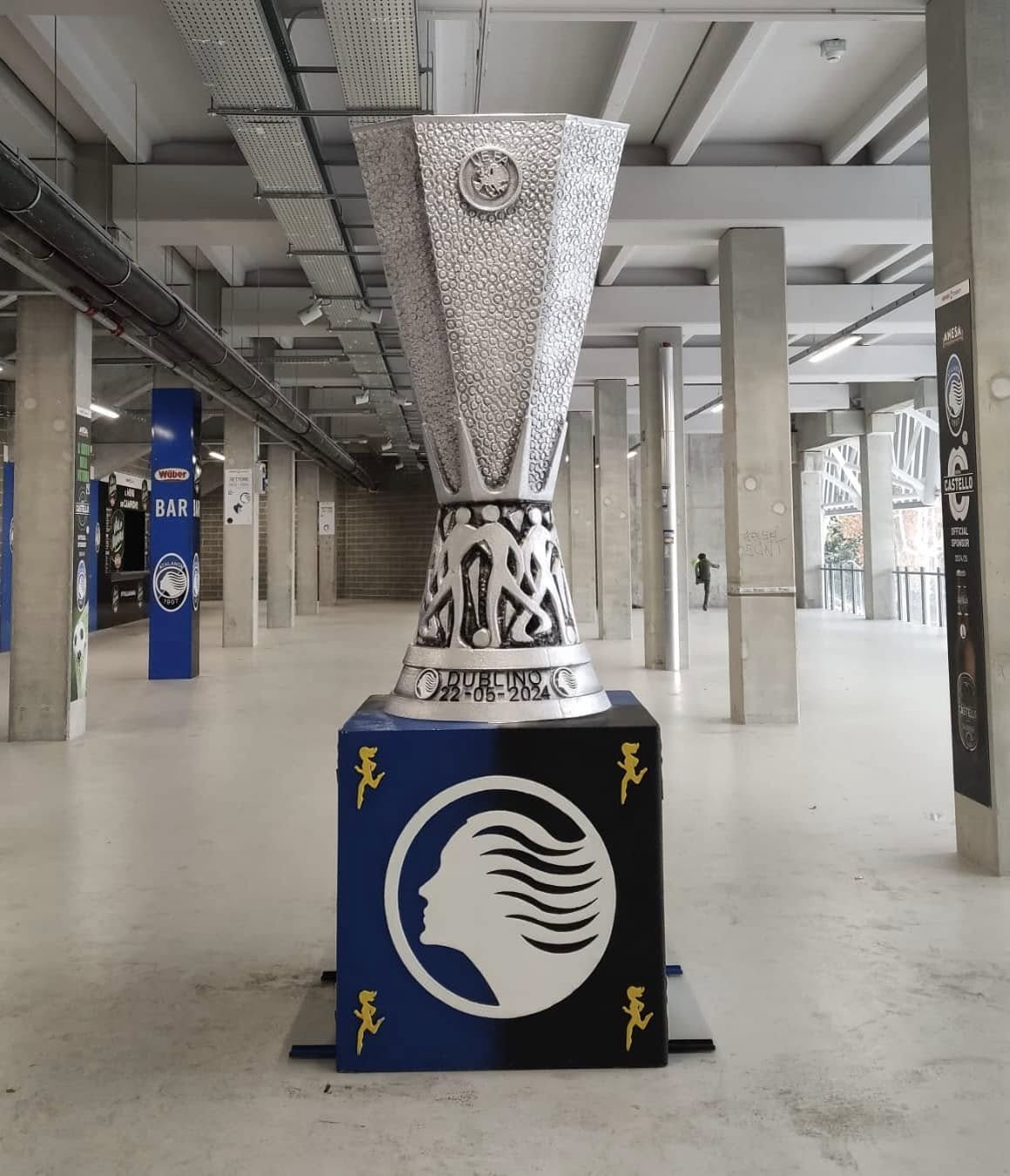 Finalmente le due maxi coppe Europa League, dopo aver girato in tutta la Bergamasca, sono finite dove si voleva che finissero definitivamente: allo stadio, all’interno della Sud e della Nord. Un grazie doveroso a Diego Corbari, della Meco srl, che le ha realizzate e regalate