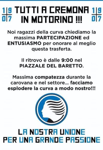 2436 biglietti per il settore ospiti polverizzati nel giro di un’ora, rappresentanti presenti a centinaia nei vari settori neutrali e… un gruppo nutrito che andrà in trasferta in motorino. L’Atalanta a Cremona andrà in trasferta, ma di fatto sarà come giocare in casa.