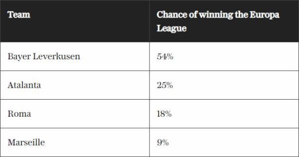 La Roma è quotata 9/2 per arrivare fino in fondo, mentre il Marsiglia, che affronterà l'Atalanta in semifinale, è relativamente lontano con un 10/1.