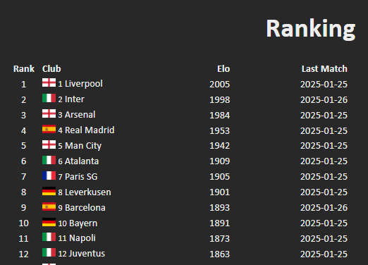 Noi al massimo storico in questa speciale classifica e nel mentre delle 11 vittorie di fila, gli attuali campioni d'Europa appena usciti da un claudicante girone unico di Champions dove avevano rischiato l'eliminazione.