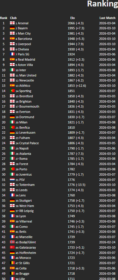 Secondo i meccanismi di questa classifica si doveva perdere e anche nettamente contro la seconda piu' forte (ebbene si, l'Arsenal e' considerato ancora meglio).