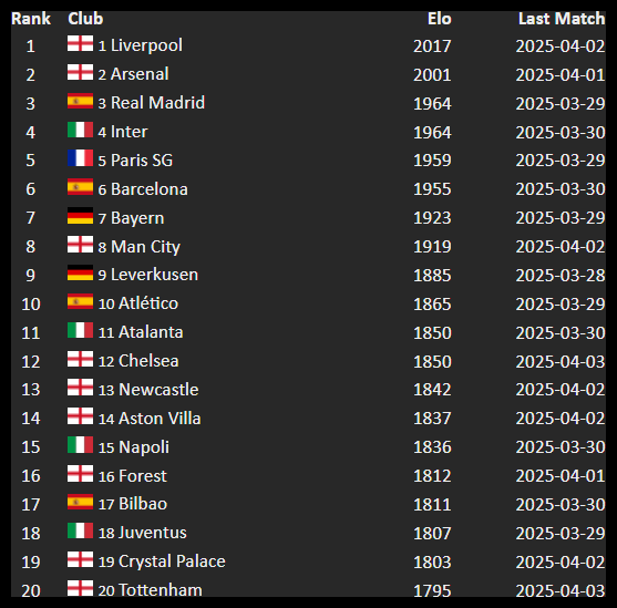 Nonostante le ultime 2 partite sicuramente giocate poco bene (Inter e Viola) godiamo ancora credito dai risultati precedenti. Siamo ancora 11mi nel ranking ELO europeo anche se sentiamo sul collo il fiato di diverse squadre attaccate a noi appena dietro