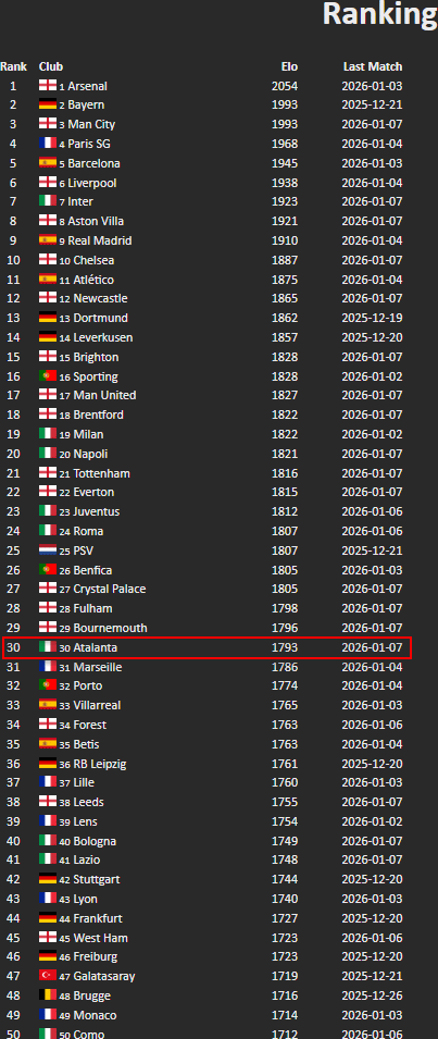 Giusto dietro "quella squadra provinciale inglese con lo stemma che assomiglia al nostro" (il Bournemouth) e giusto davanti ai nostri amiconi del Marsiglia, gia' ampiamente battezzati nelle sfide del '24 e del '25