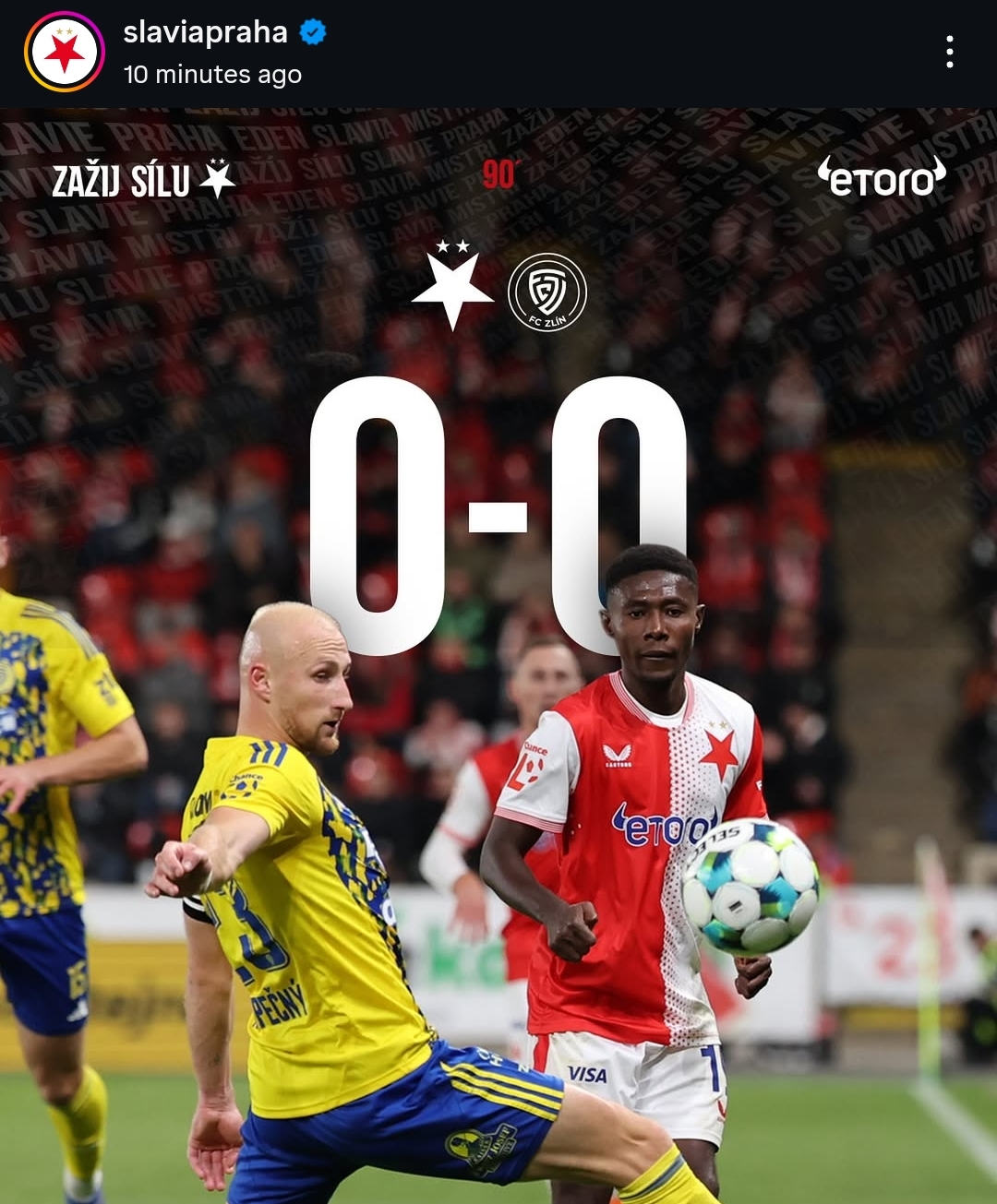 I nostri prossimi avversari in Champions non vanno oltre lo 0-0 casalingo contro lo Zlin, sesto in classifica. Lo Slavia aggancia in testa alla classifica gli storici rivali dello Sparta che però hanno una partita in meno. Un tempo, il secondo, per il nostro ex Vorlicky.