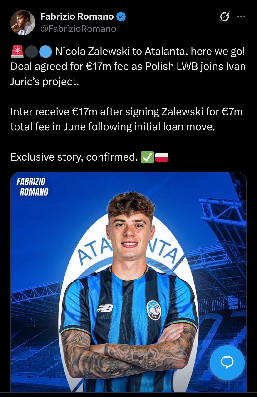 FABRIZIO ROMANO: PER ZALEWSKI È PRATICAMENTE FATTA
