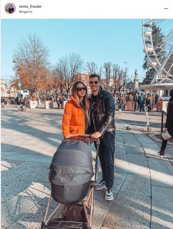 05/12/2021 | 19.30 20 Famigliola bergamasca sul sentierone Tornato da Napoli a tarda notte, giusto relax per Remo con moglie e figlio in una bella domenica assolata a passaggio sul Sentierone (fonte IG Remo Freuler) By brignuca