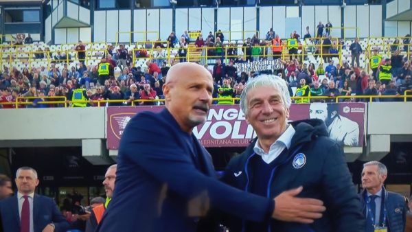 Prima della partita l'abbraccio tra Gasperini e Colantuono in un Arechi quasi deserto e contestatario