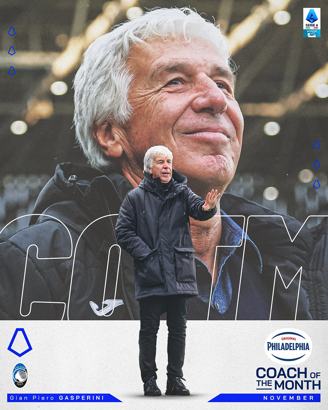 Gasperini nominato allenatore del Mese per la Serie A, un riconoscimento che celebra il suo straordinario lavoro alla guida dell'Atalanta. Nel corso del mese, la squadra ha mostrato un mix perfetto di solidità difensiva e brillantezza offensiva, raccogliendo solo vittorie nel mese di Novembre. Bravo Mister!