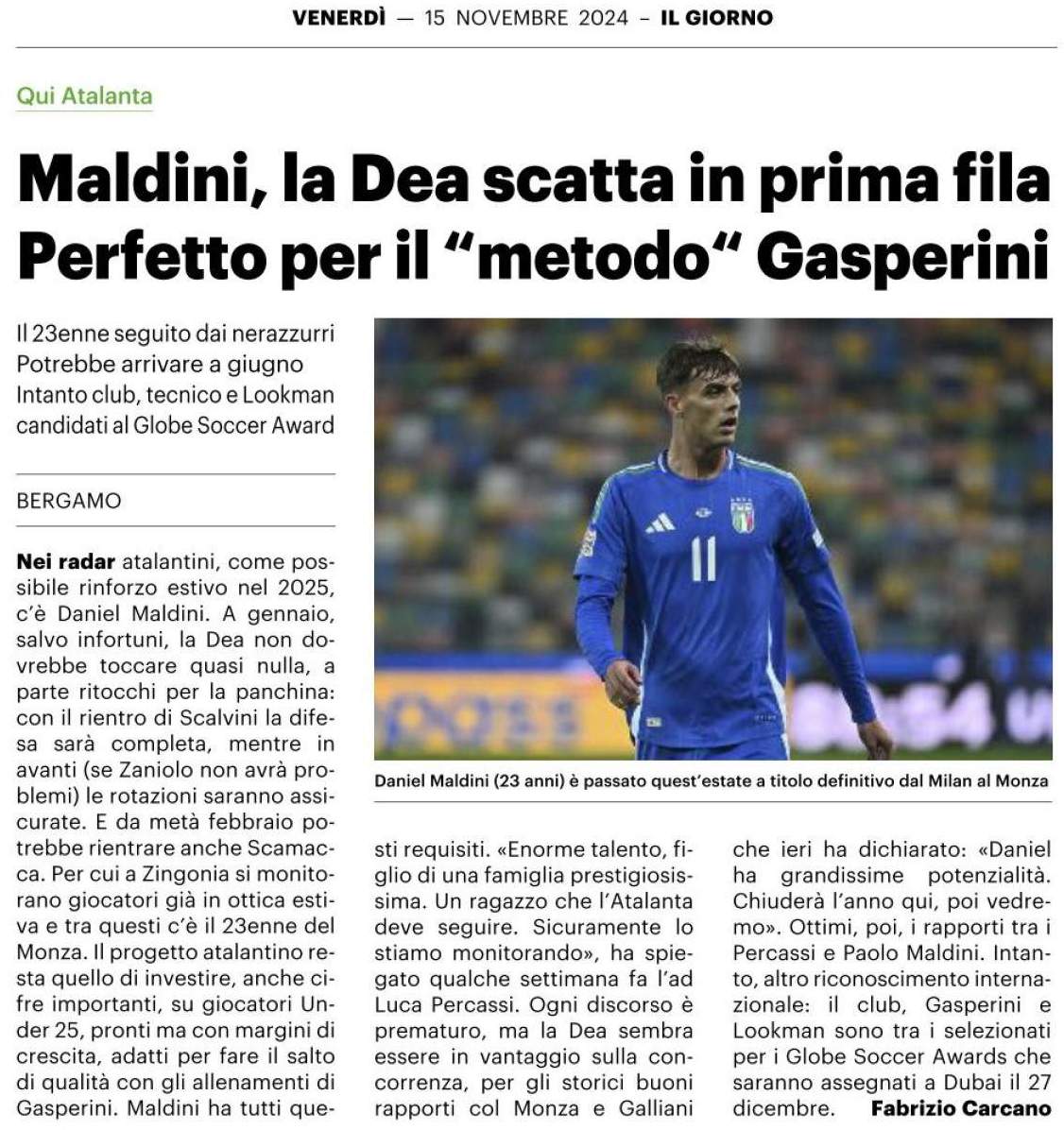 Giorno non v'e' che Daniel Maldini non venga accostato, se non dato per sicuro, alla Dea prossima ventura. Ci chiediamo quali e quanti santi in Paradiso abbia il ragazzo.
