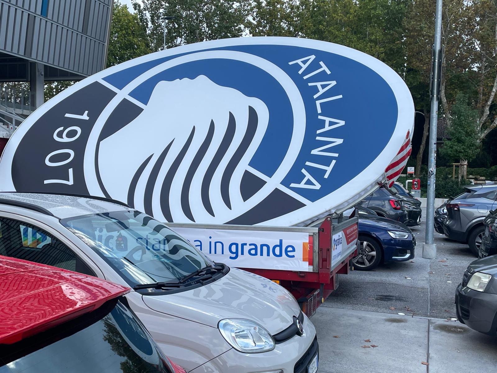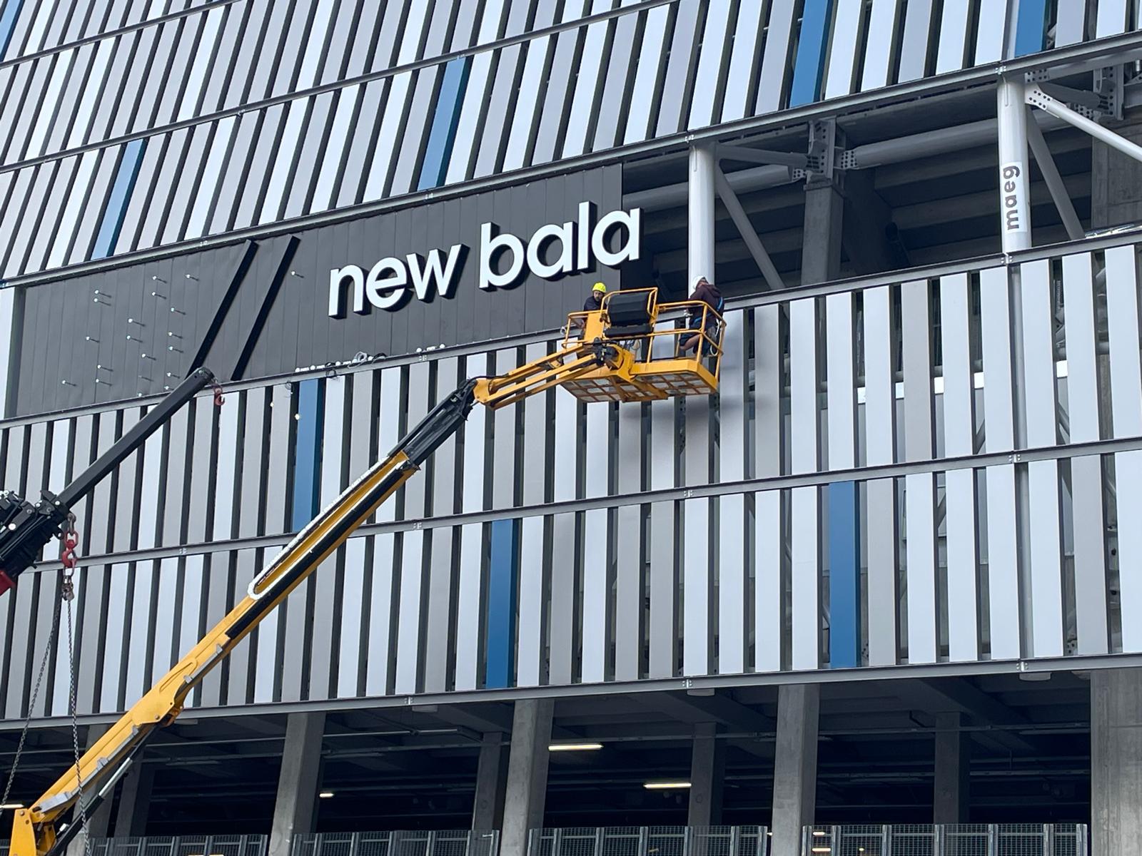 E New Balance Arena sia. Ecco il montaggio della nuova insegna allo stadio.