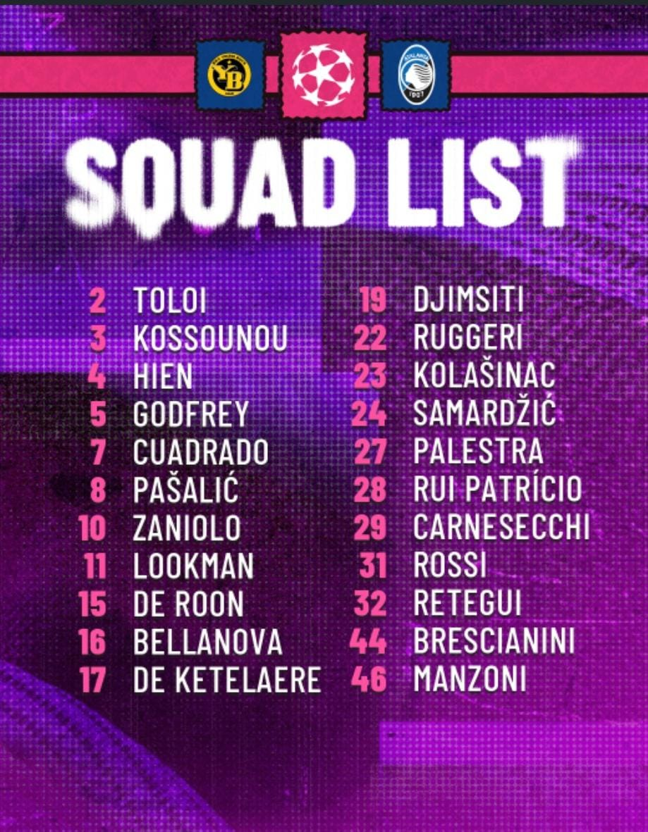 Sono 22 i calciatori convocati da mister Gian Piero Gasperini per Young Boys-Atalanta, partita della 5ª giornata della League Phase di UCL in programma martedì 26 novembre alle 21 allo Stadion Wankdorf di Berna: